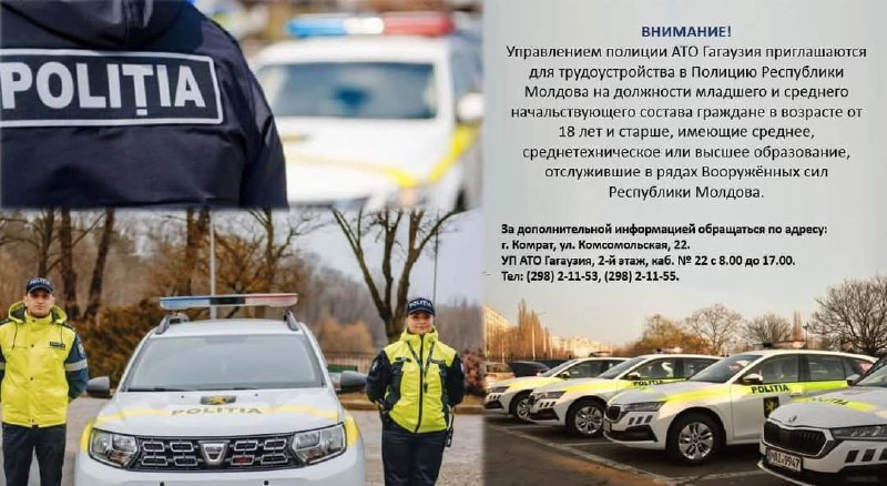 Уважаемые жители и гости района Вулкэнешть! Инспекторатом полиции Вулкэнешть приглашаются на работу на офицерские...