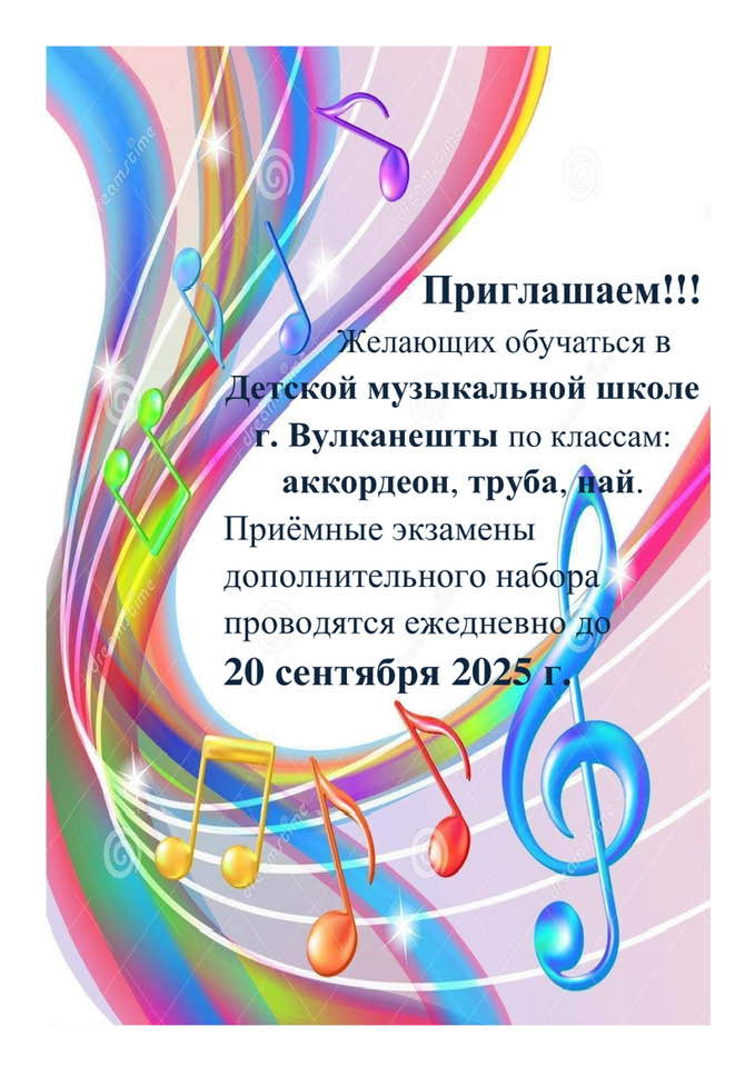 Музыкальная школа города Вулканешты объявляет набор учеников, на учебный 2025-2026 год.