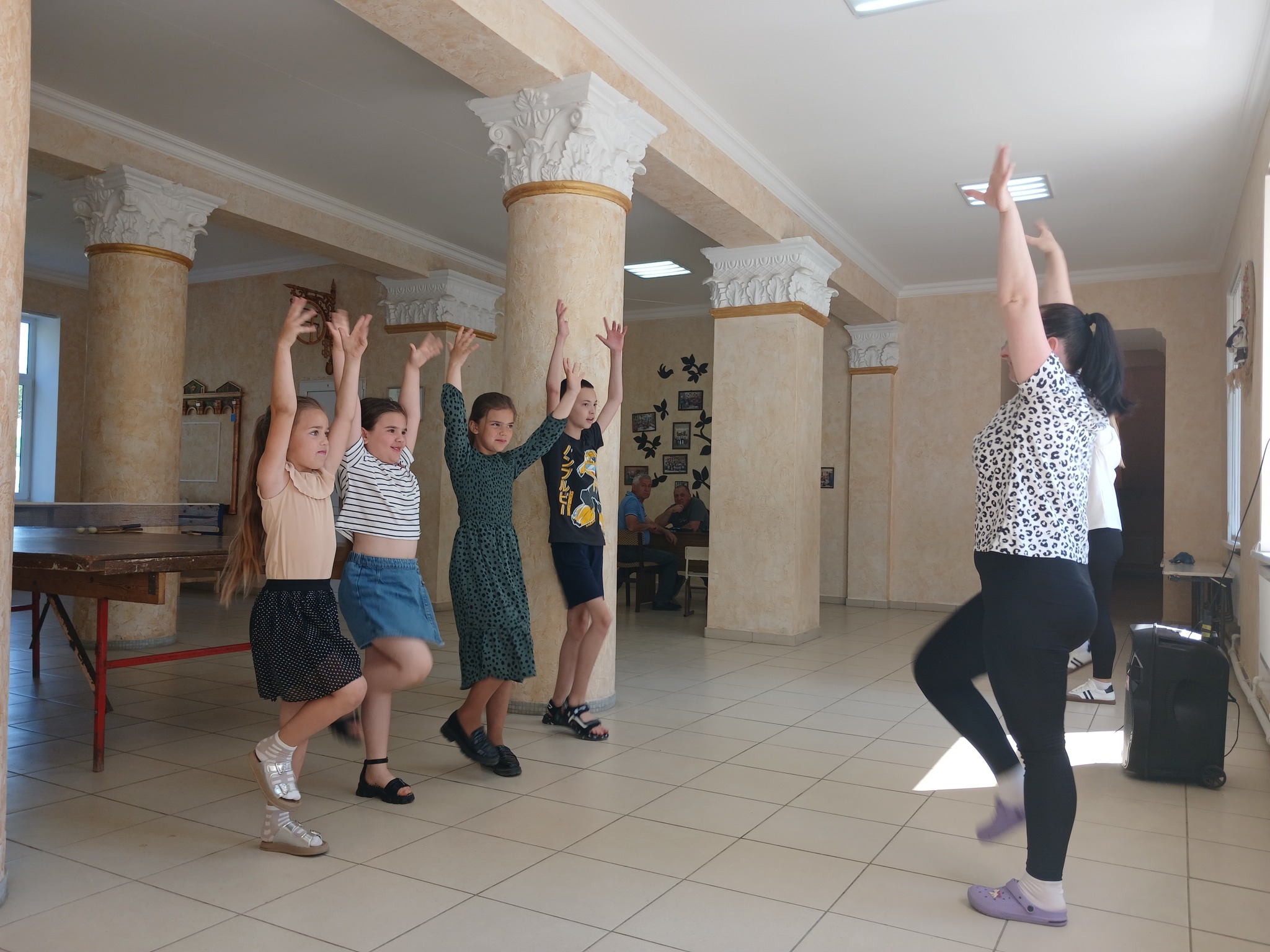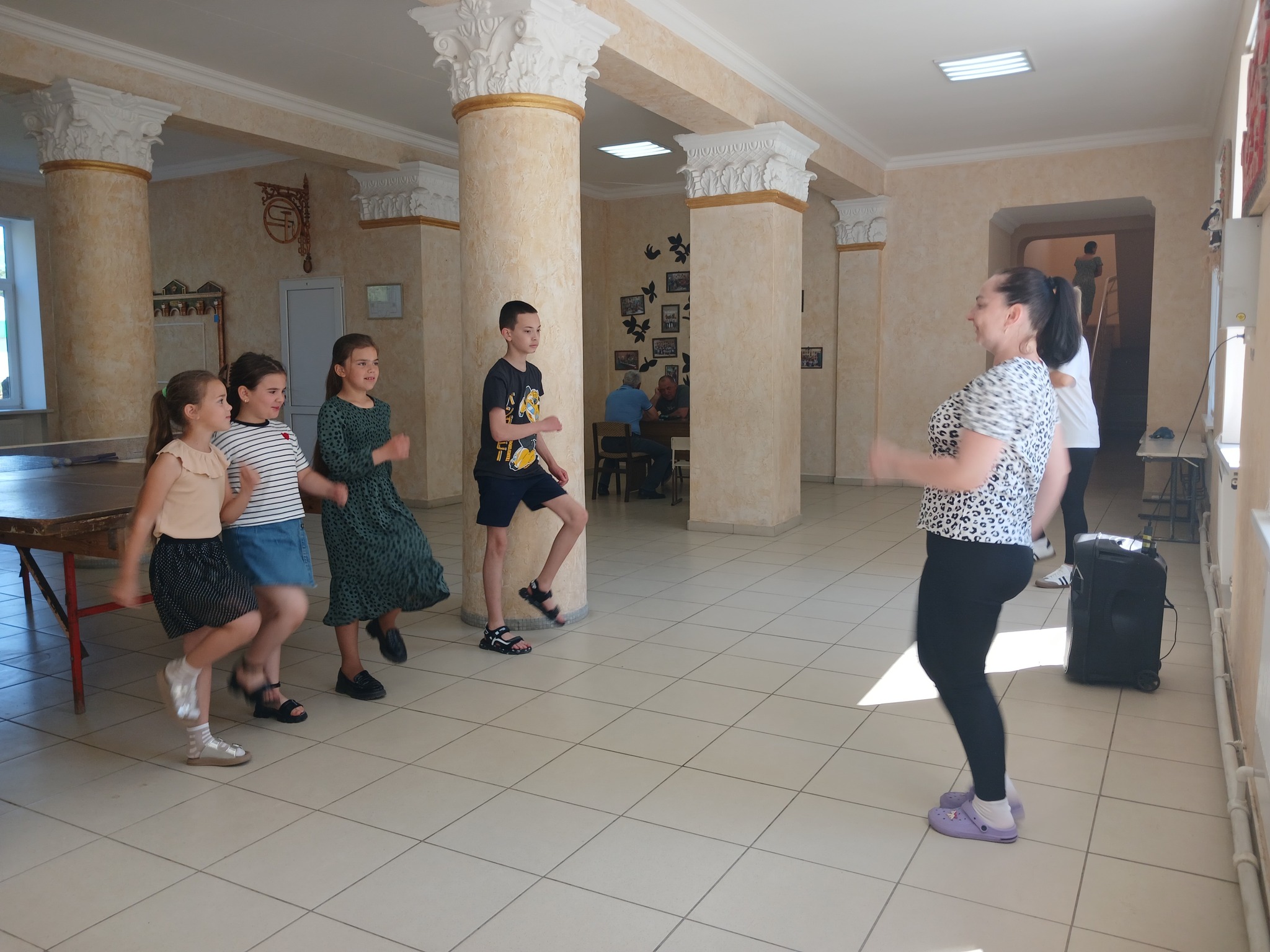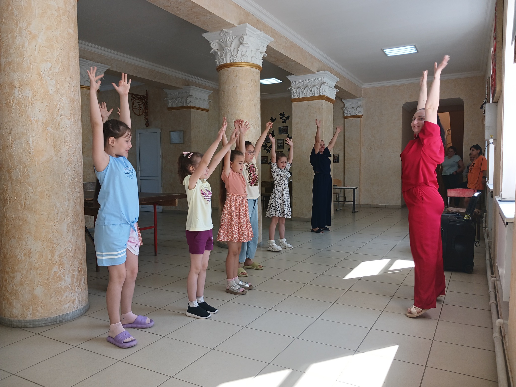 Каждое утро профессиональный хореограф Дома детского творчества – Хергеледжи Оксана Андреевна подбирает и проводит разнообразные виды зарядок для наших деток, создаёт вокруг себя атмосферу счастья и прекрасного настроения у окружающих!!!