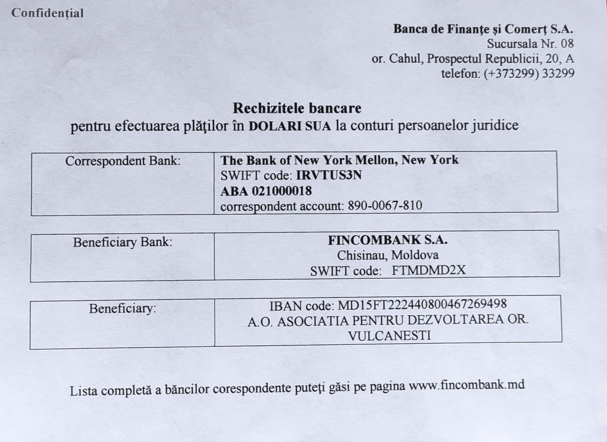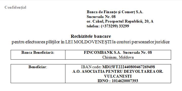 Fincombank S.A. cod FTMD2X леевый счёт IBAN cod : MD15 FT 222440800467269498