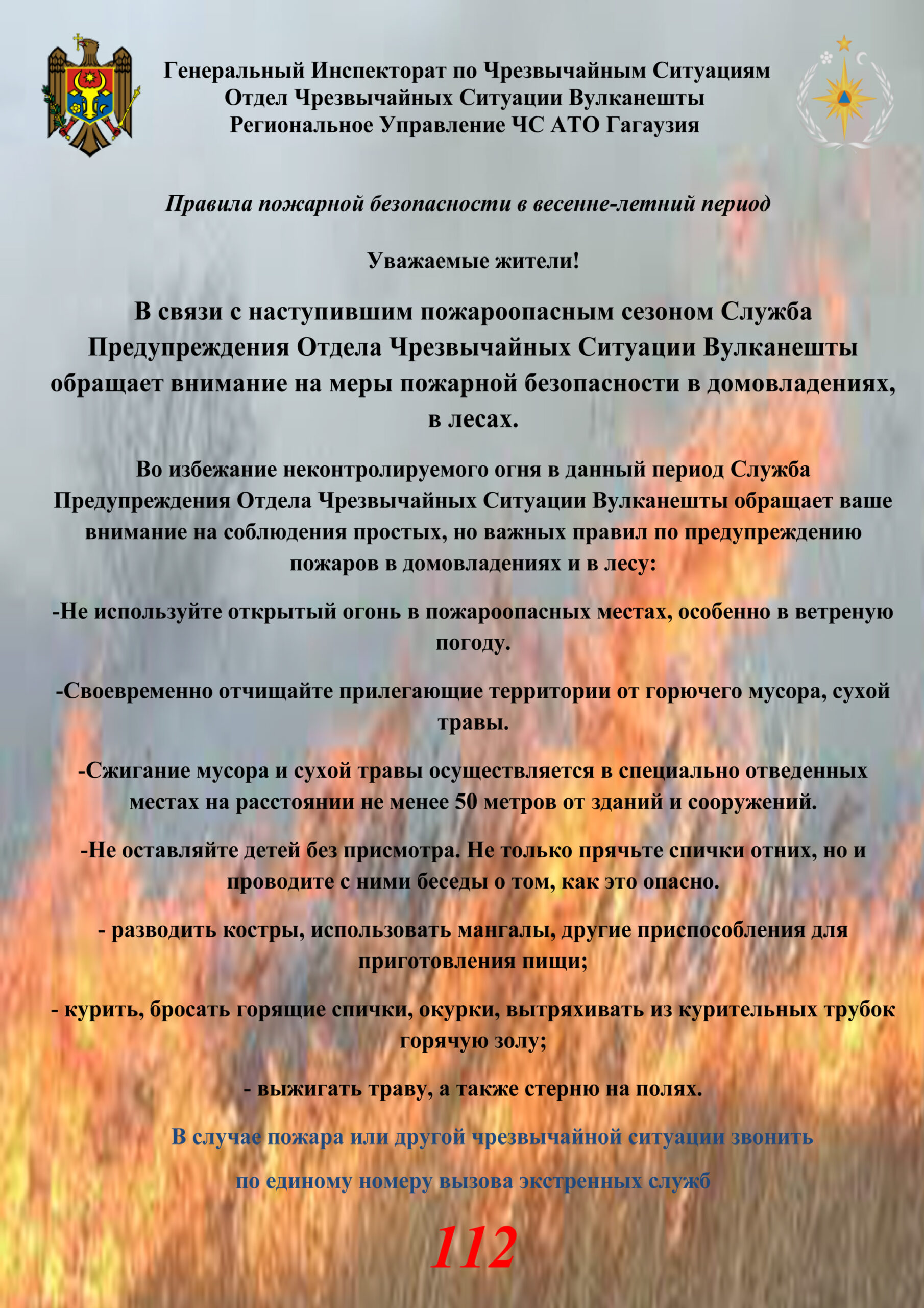 СЛУЖБА ПРЕДУПРЕЖДЕНИЯ ОЧС ВУЛКАНЕШТЫ обращается к гражданам с рекомендациями по соблюдению мер по предупреждению пожаров: